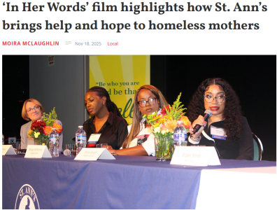 Quite simply, you help St. Ann’s change young lives. Tonight, 51 women and children have a safe and sound place to call home – including the eight women and their six children who live in our Grace House Teen Mother-Baby Program. I am so thankful, and proud, of the work you empower. Thank you!