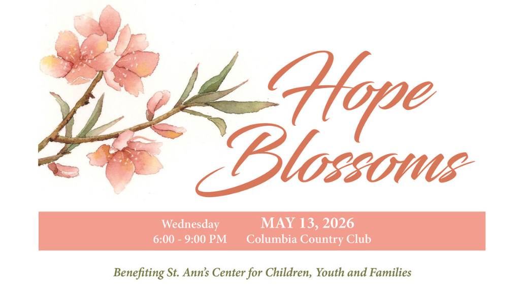 You are cordially invite you to the annual Hope Blossoms gala, taking place on May 13 from 6:00 PM to 9:00 PM. Join us in celebrating St. Ann's Center for Children, Youth and Families' history and mission!
