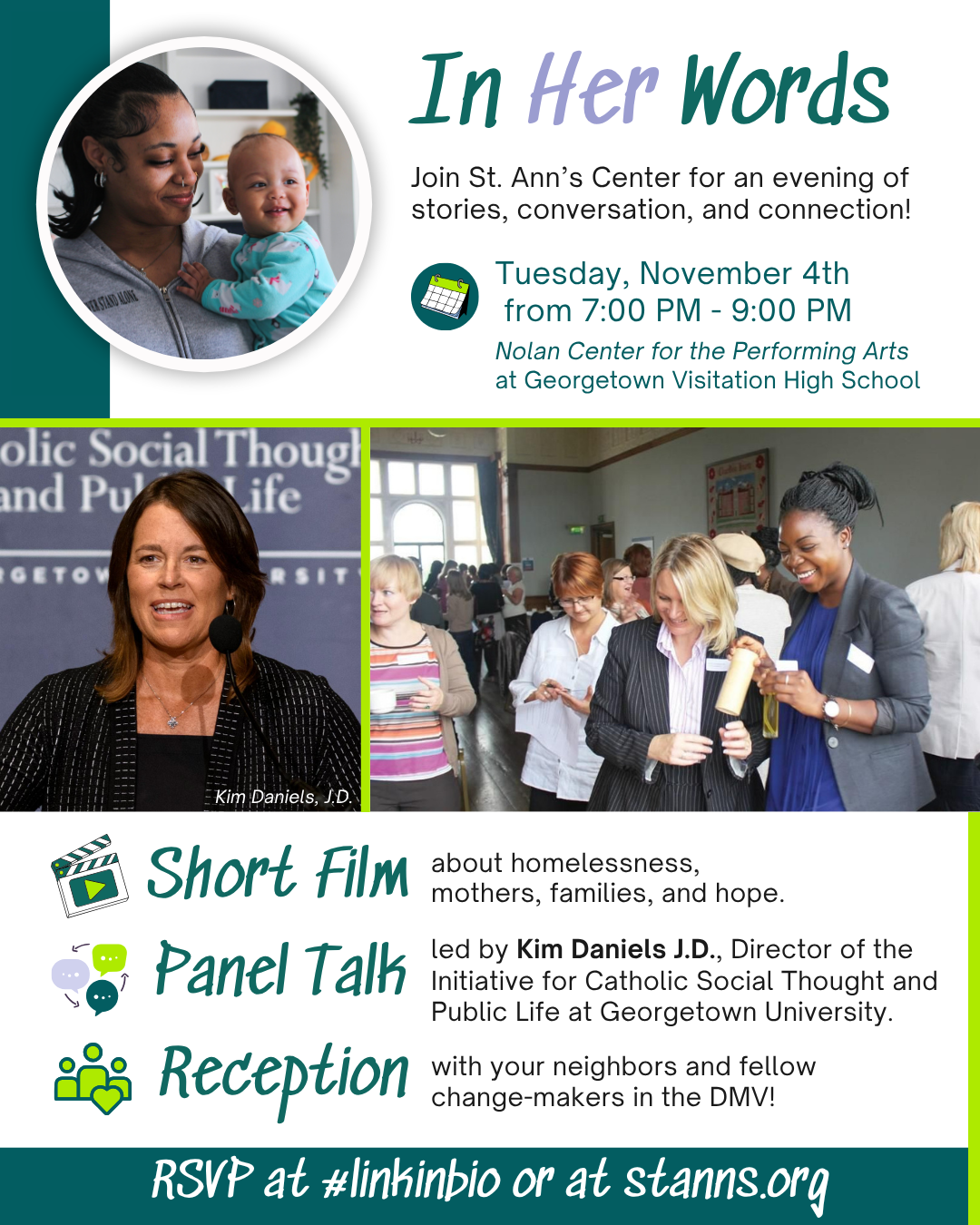 You're Invited! Please join St. Ann's Center for "In Her Words," a short film and community conversation about mothers, homelessness, families and hope.